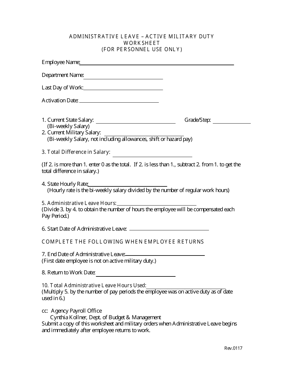 Performing Active Military Duty - Office of Human Resources Accrue 15 days (120 hours) of military leave each fiscal year. May carry over up to 15 days (120 hours) of unused military leave from one fiscal year to the next. Produce a maximum military leave benefit of 30 days in a fiscal year. Military Duty - Ascend Public Charter Schools For military leaves of more than thirty days, a staff member may elect to continue their health coverage for up to twenty-four months of uniformed service but may be required to pay all or part of the premium for the continuation coverage. Requests for military leave. Leave for active or reserve duty. Upon receipt of orders for active or ... PDF Military Service and Post-Active Duty Student Deferment ... your period of active duty service. Military Service Deferment. By checking this box, I request that my loan holder defer repayment of my eligible loan(s) beginning on the date I began performing the military service that qualifies me for the deferment and ending 180 days following completion of my qualifying military service. Frequently Asked Questions : Pay & Leave : Military Leave ... A Federal employee who is a member of the National Guard or Reserves is entitled to 15 days (120 hours) of paid military leave under 5 U.S.C. 6323 (a) each fiscal year for active duty, active duty training, or inactive duty training. An employee on military leave under section 6323 (a) receives his or her full civilian salary, as well as ...
