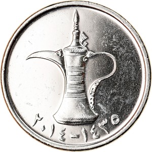 Moneda 1 dirham 2012-2014 de Emiratos Árabes Unidos ... La moneda 1 dirham del 2012-2014 pertenece al catálogo de monedas de Emiratos Árabes Unidos. En la siguiente ficha encontrarás las principales características numismáticas de esta moneda: ceca, año de acuñación, diámetro, tirada, peso, material de fabricación y tipo de canto.