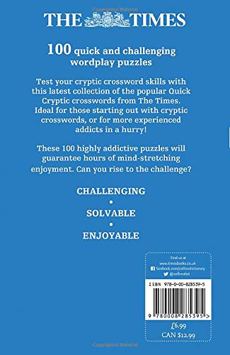 The Times Quick Cryptic Crossword Book 1 Paperback - amazon.com The Times How to Crack Cryptic Crosswords. by Tim Moorey Paperback. $11.95. Ships from and sold by Amazon.com. FREE Shipping on orders over $25.00. The Times Quick Cryptic Crossword book 2: 100 Challenging Quick Cryptic Crosswords from The Times. by The Times Mind Games Paperback. $12.94.