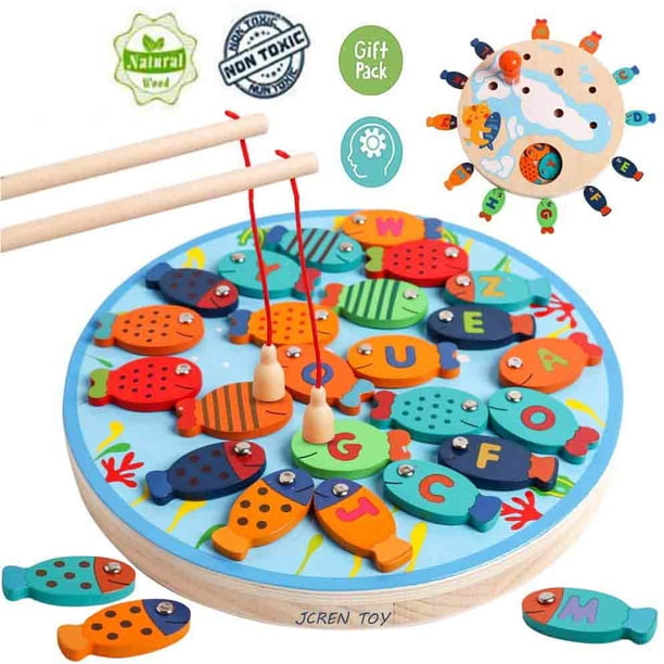 NASHRIO Magnetic Wooden Fishing Game Toy for Toddlers, Alphabet Fish Catching Games Puzzle with Letters, Preschool Learning ABC Educational Toys for 3 ...